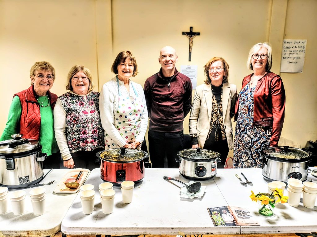 Five ladies from Saint Catherine’s who served their home-made soups to raise much needed money for the poor people of the third world. Also pictured is Mark McMahon from Trocaire. The total raised was £2500. Well done Saint Catherine’s!