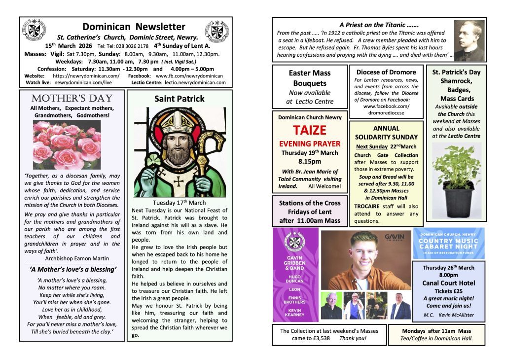 The Dominican Church Restoration Committee is delighted to announce a major Country Music Cabaret Evening in aid of the restoration of St Catherine’s Dominican Church, Newry. The event will take place on Thursday 26 March 2026 in the Miller Suite of the Canal Court Hotel, Newry, with doors opening at 7.00pm.